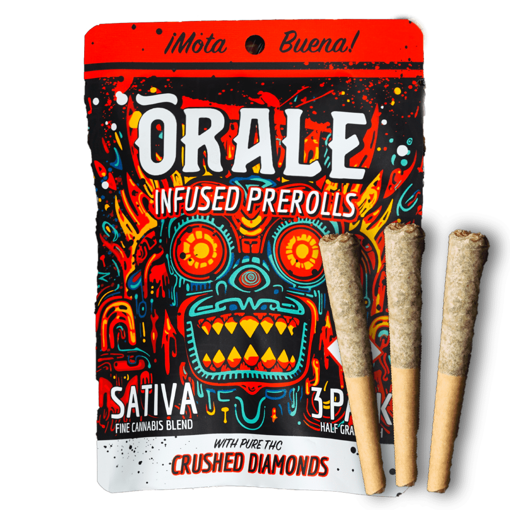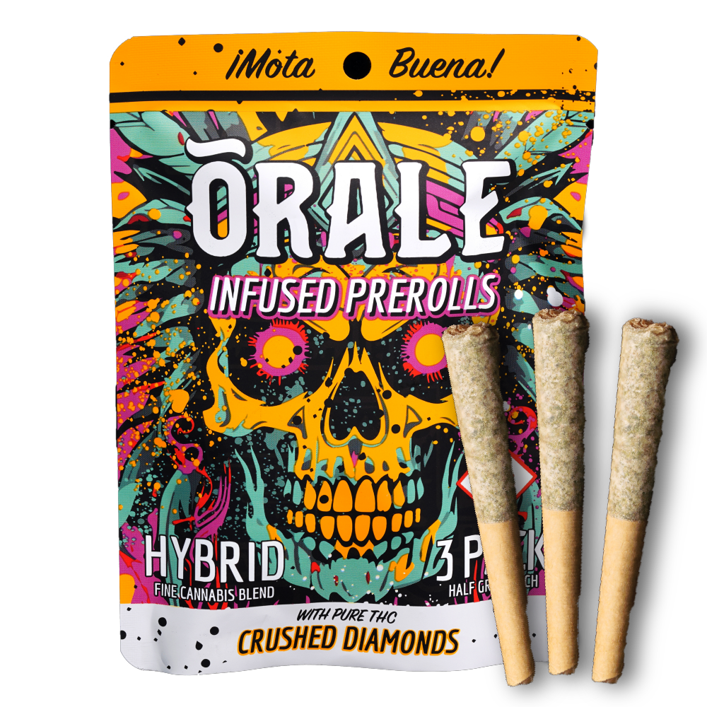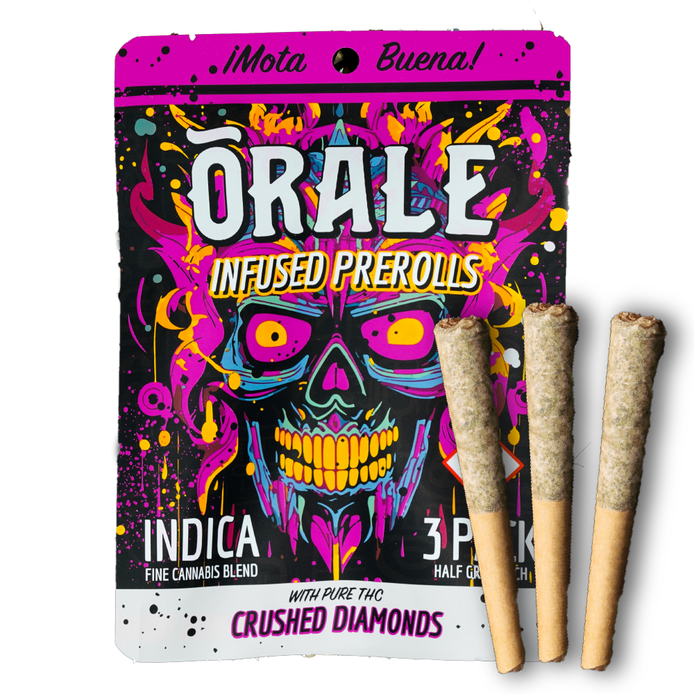 Ready for a convenient, super-powerful high? ORALE Infused Prerolls are your go-to. Each perfectly sized half-gram preroll comes in its own tube—designed for an easy, on-the-go experience with a potent punch of flavor and smooth, intense effects. Crafted with 100% whole bud flower and infused with pure THC Crushed Diamonds, these prerolls deliver premium quality, rich flavor, and that next-level experience.